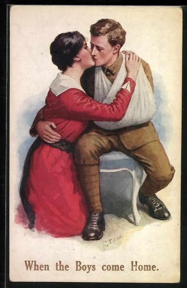 AK Verwundeter britischer Soldat küsst Frau
