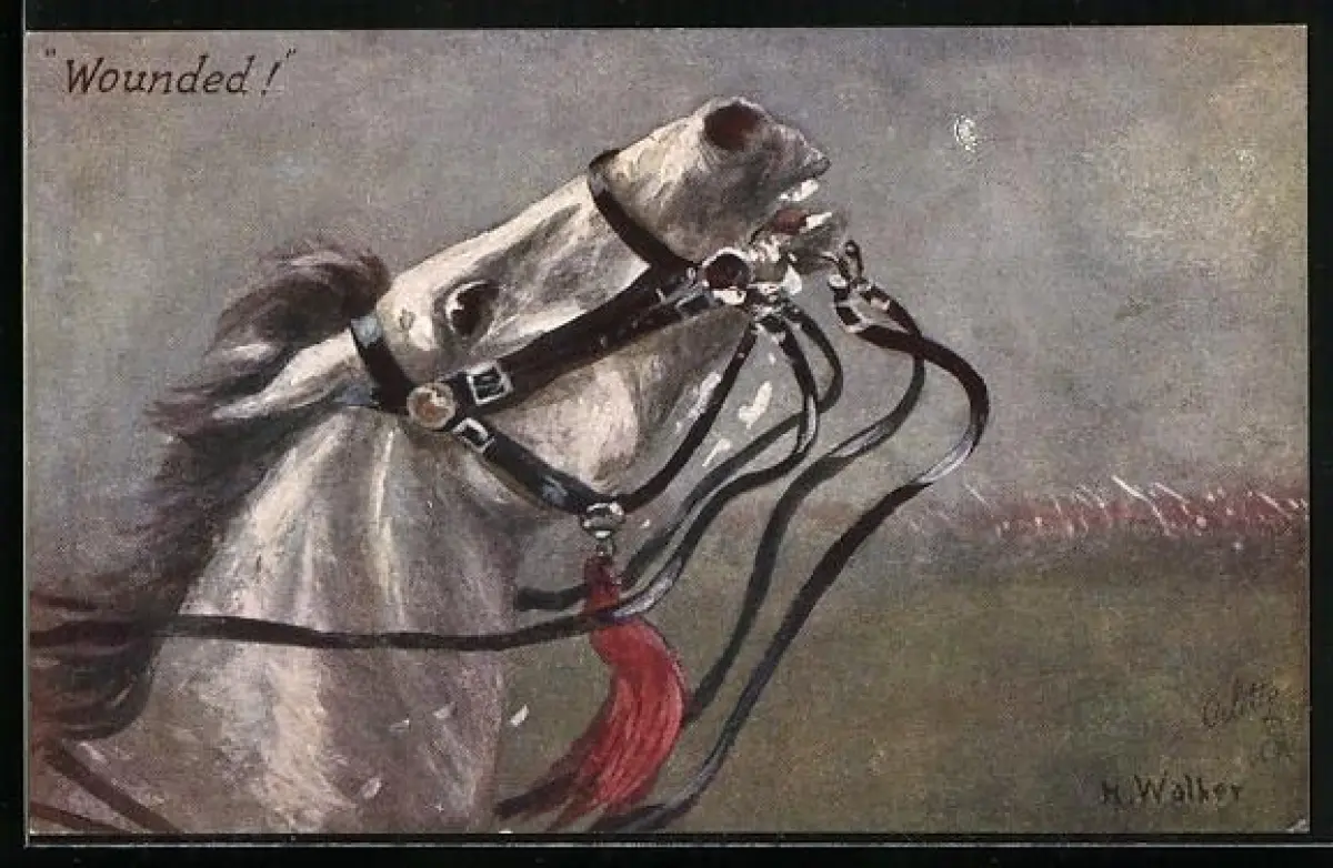 AK Verwundetes Pferd am Rande einer Schlacht