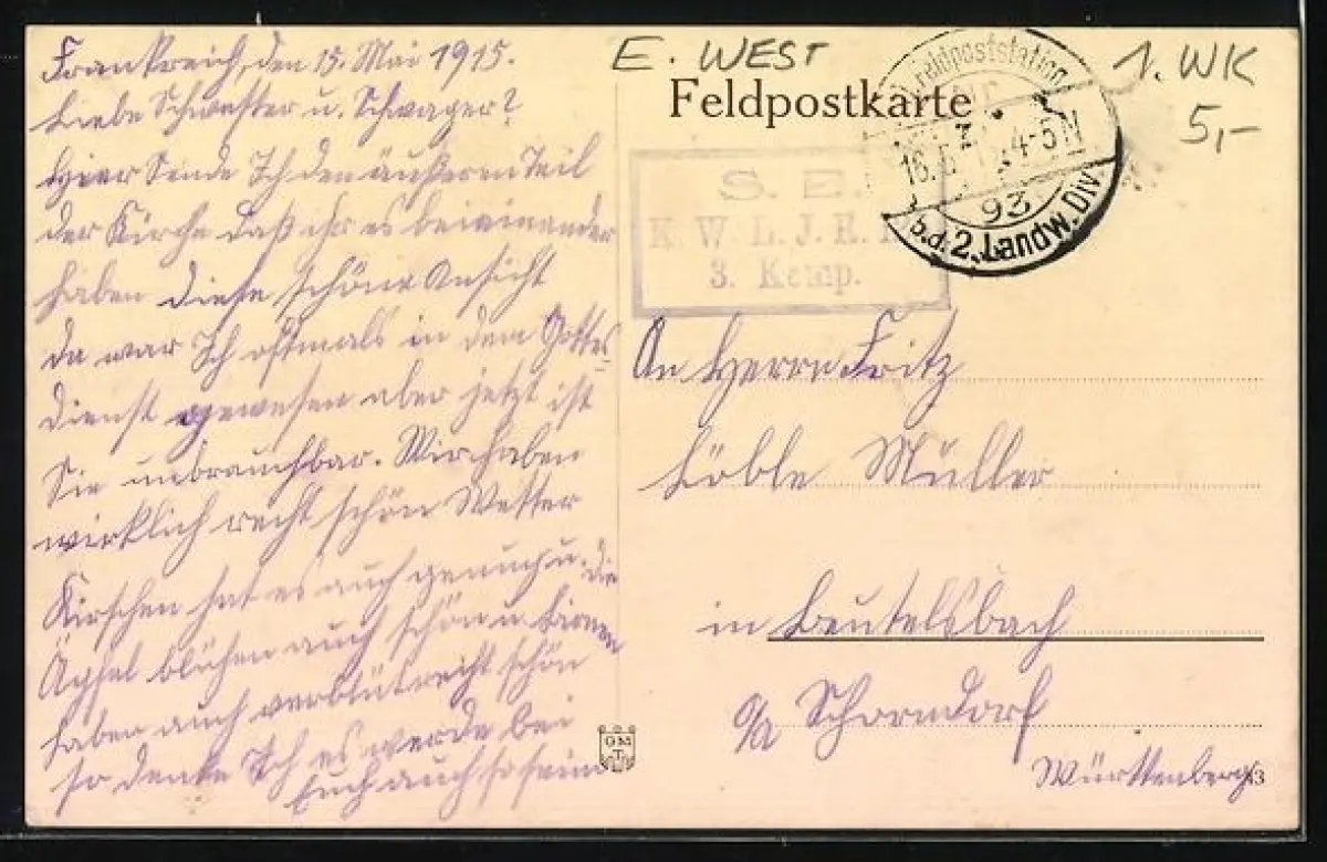 gelaufen 1915, Stempelspur, guter Zustand