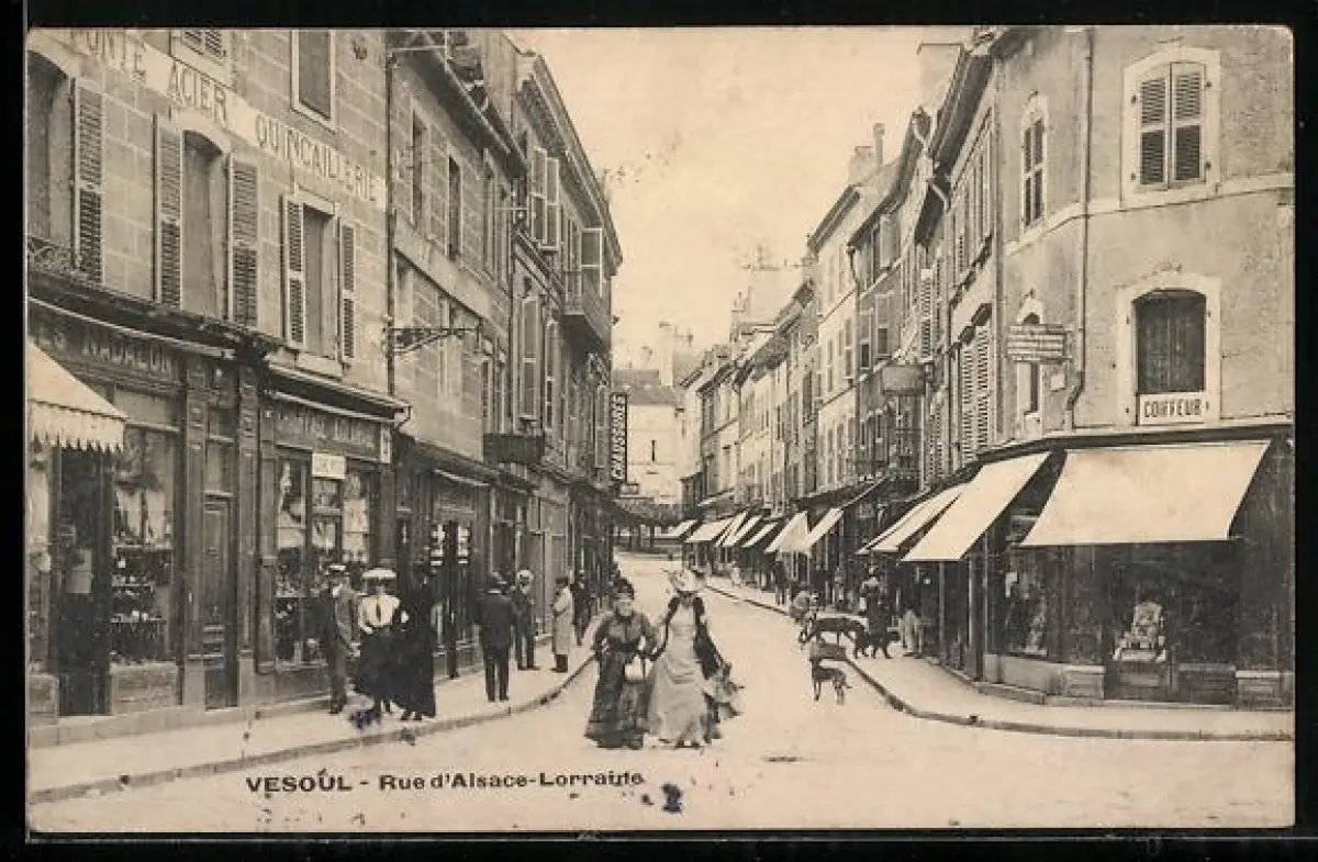 AK Vesoul, Rue d`Alsace-Lorraine animée avec passants et boutiques
