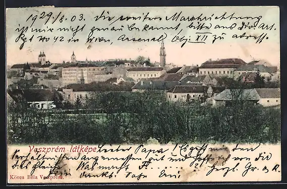 AK Veszprem, latkepe, Blick auf den Ort mit Kirche