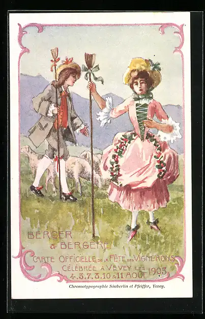 AK Vevey, Fete des Vignerons 1905, Berger et Bergère