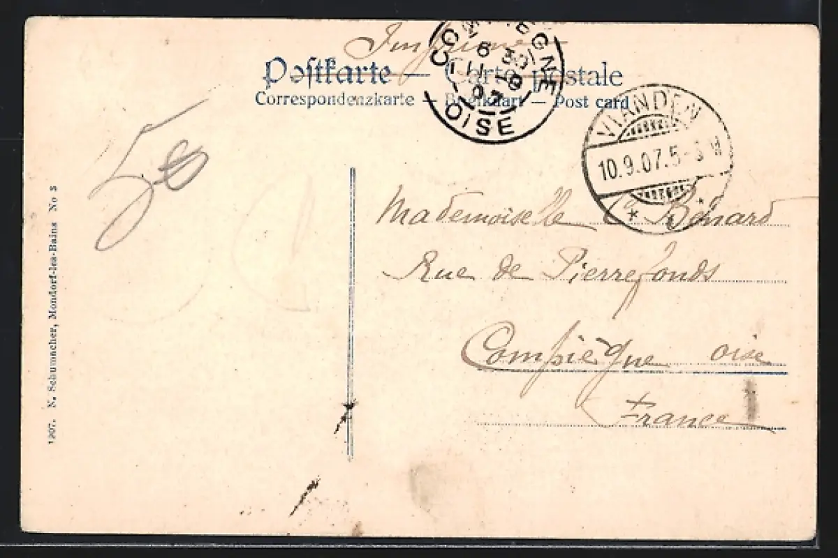 alte Ansichtskarte, gelaufen 1907, Eckknick unten re., guter Zustand