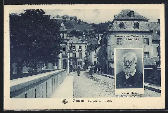 AK Vianden, Vue prise sur le pont, Portrait Victor Hugo