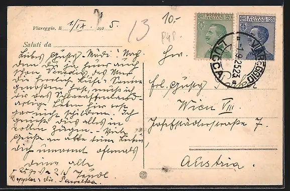 gelaufen 1925, Eckknick oben re., Stempelspur, guter Zustand