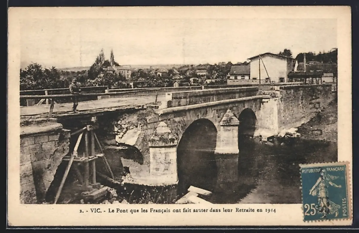 AK Vic, Le Pont que les Francais ont fait sauter dans leur Retraite en 1914