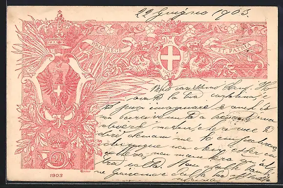 AK Vicenza, Pro. Rege et Patria 24, Königl. Wappen