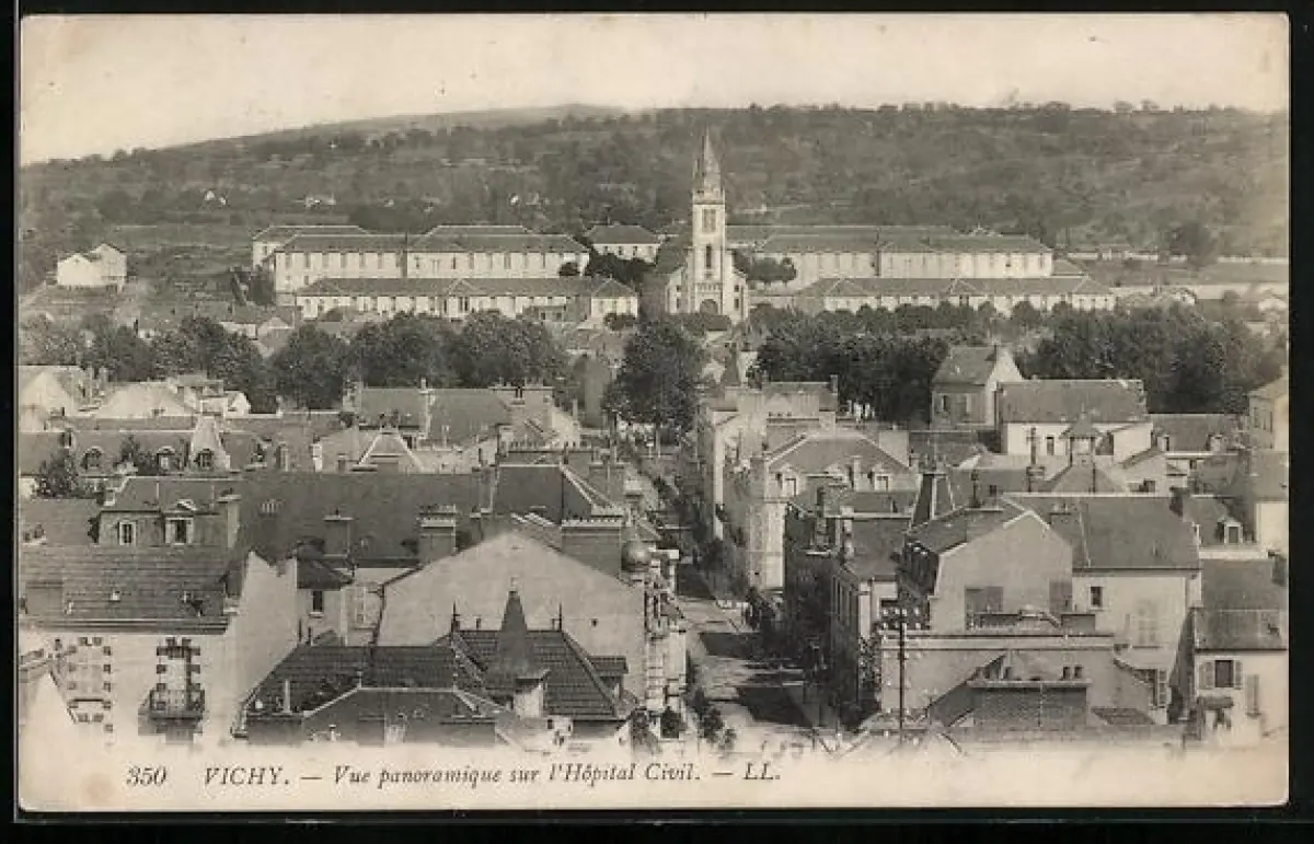 AK Vichy, Vue panoramique sur l`Hopitel civil, Ortspartie mit Krankenhaus