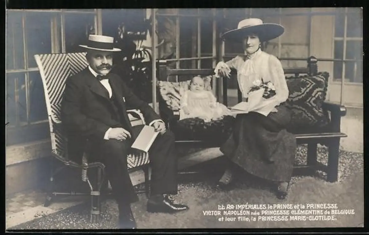 AK Victor Napoléon mit Clémentine von Belgien und Nachwuchs