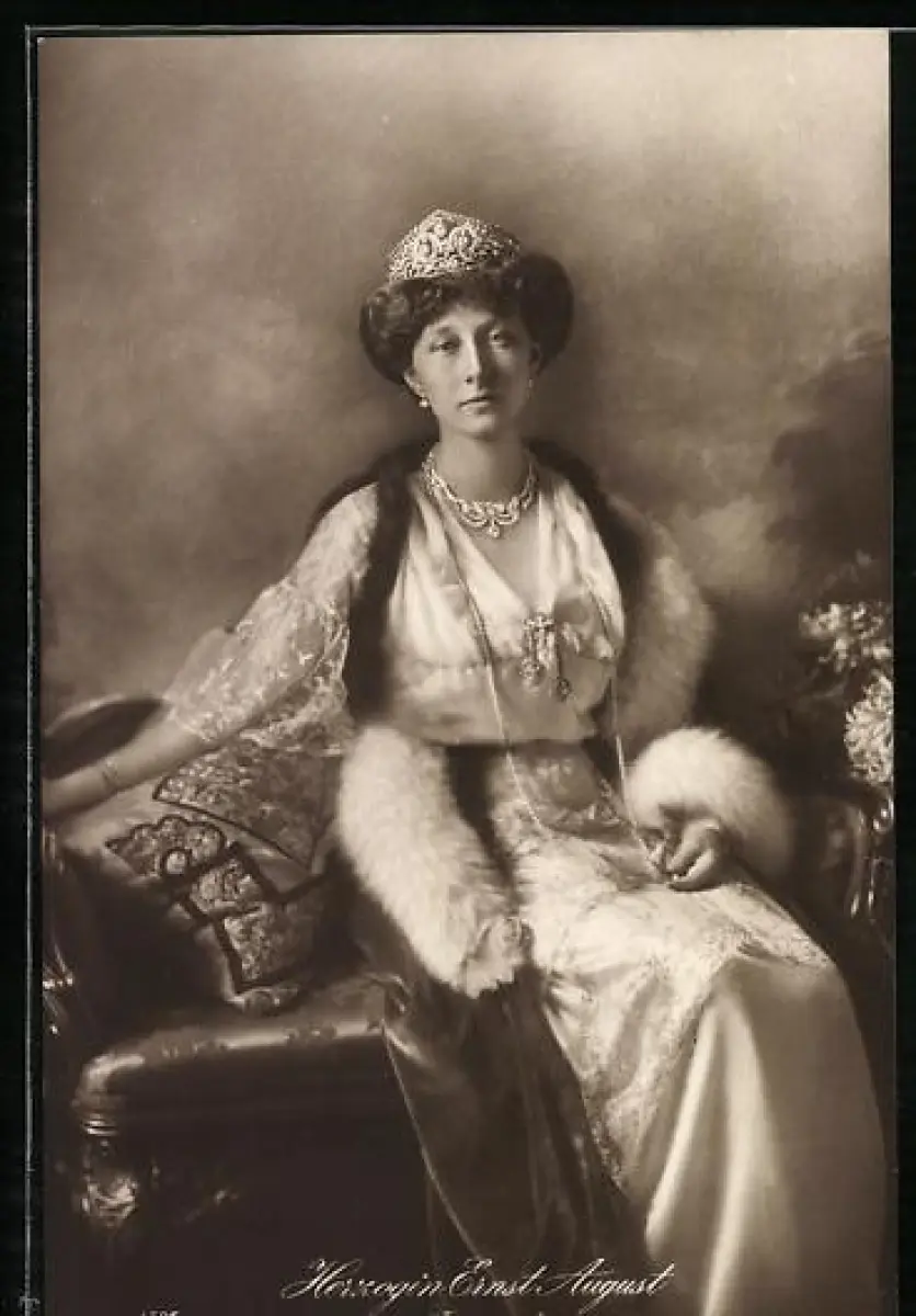 AK Victoria Louise Herzogin von Braunschweig mit ihrer Krone und im Pelz