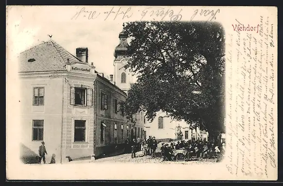 AK Viehdorf, Strassenpartie mit Hoffers Gasthof