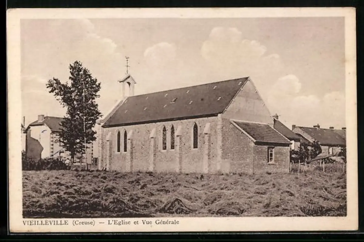 AK Vieilleville /Creuse, L`Église et Vue Générale