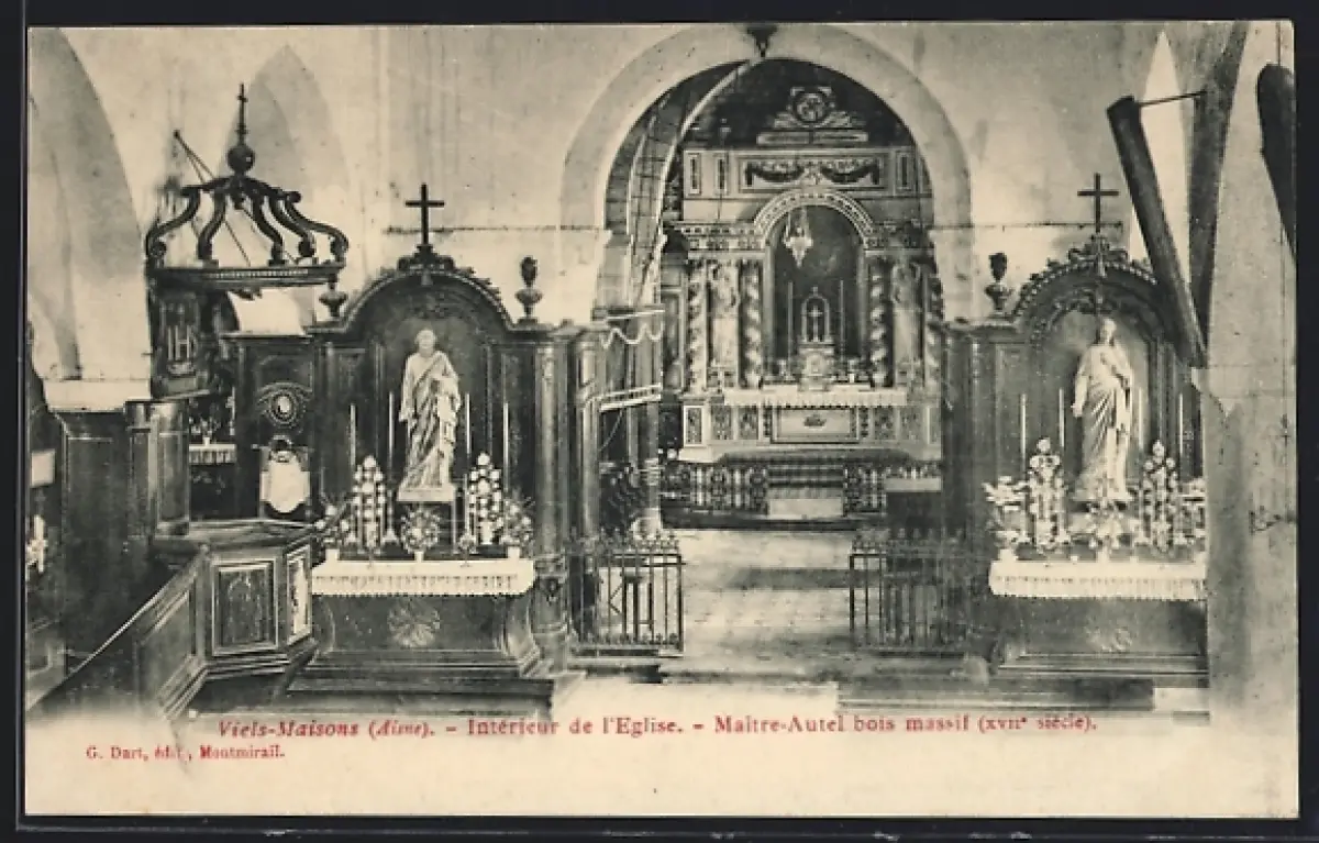 AK Viels-Maisons /Aisne, Intérieur de l`Eglise, Maître-Autel bois massif