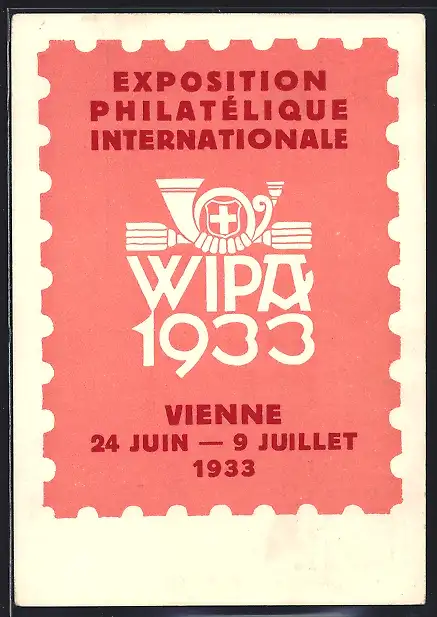 AK Vienne, Exposition Internationale Philatelique 1933, Briefmarkenförmiges Plakat mit Posthorn