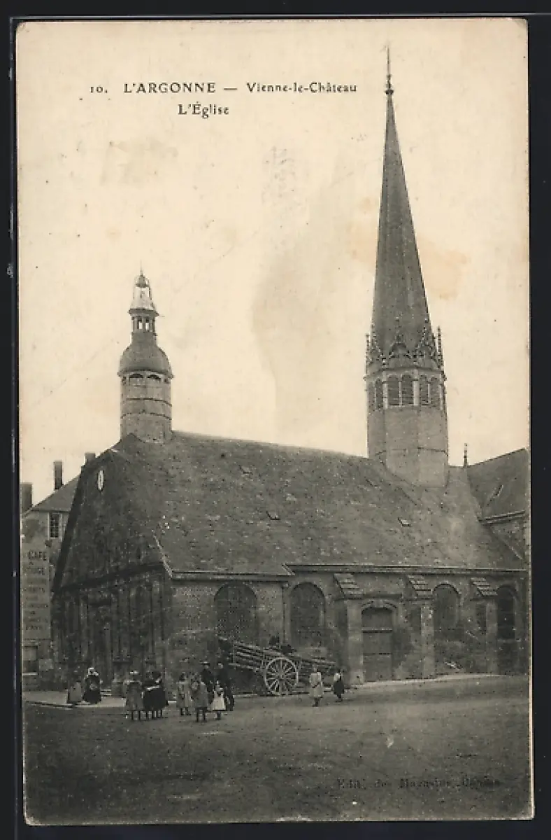 AK Vienne-le-Château, L`Église avec ses flèches imposantes et la place animée