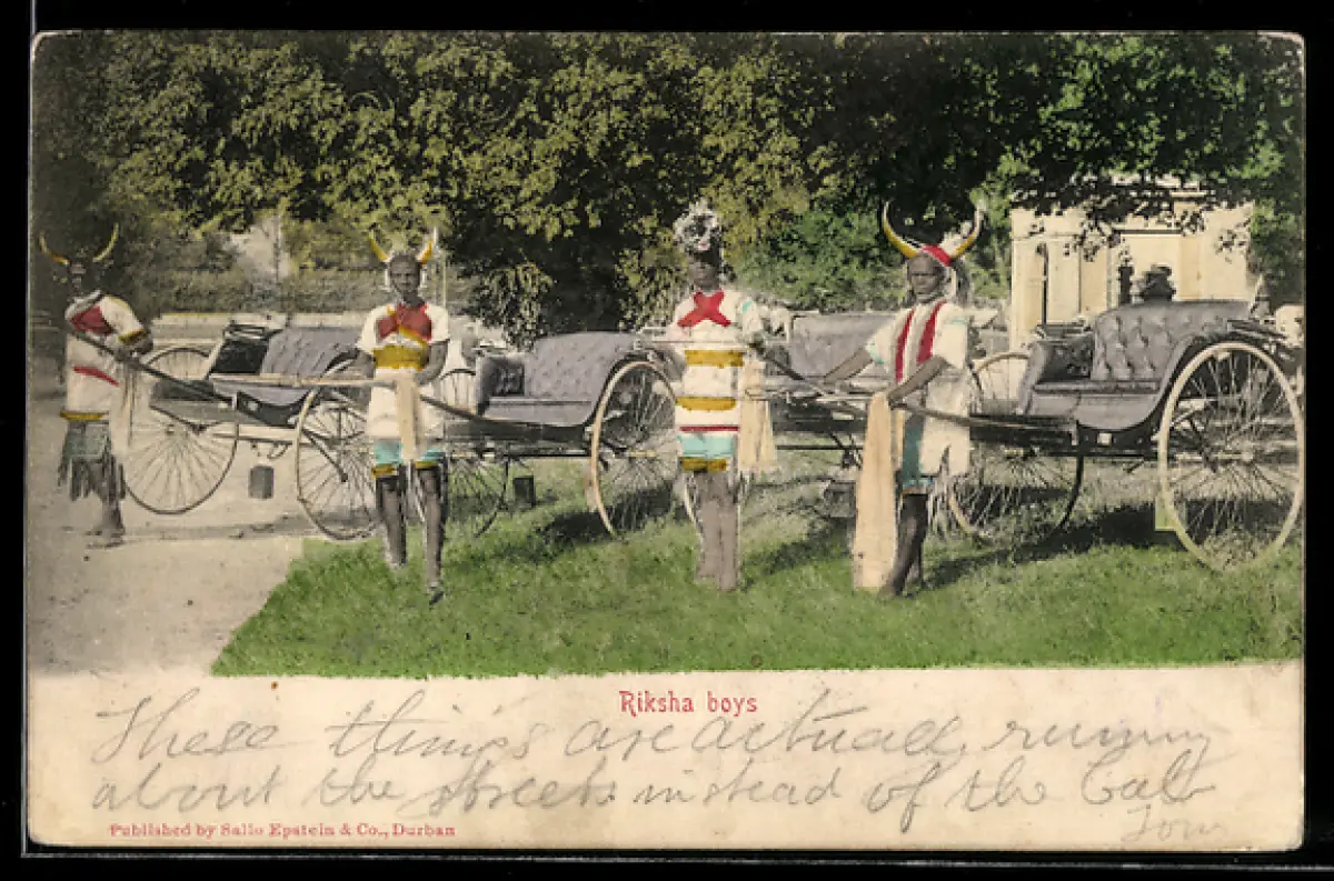 AK Vier Rikscha-Fahrer auf einer Wiese