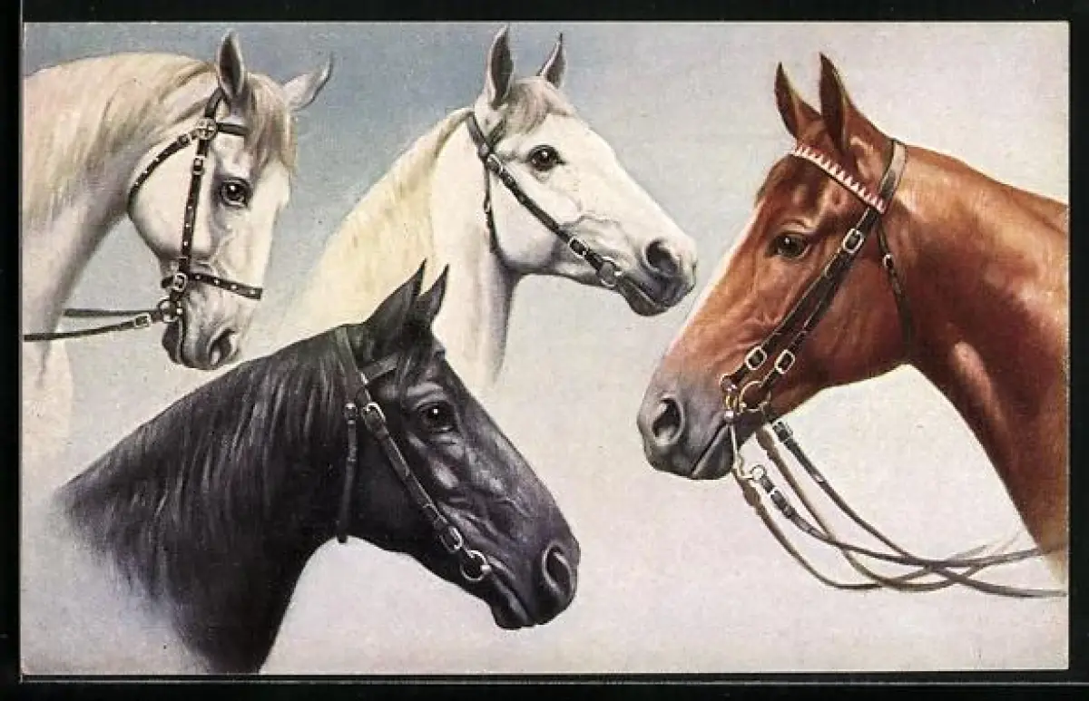 AK Vier edle Reitpferde mit Halftern