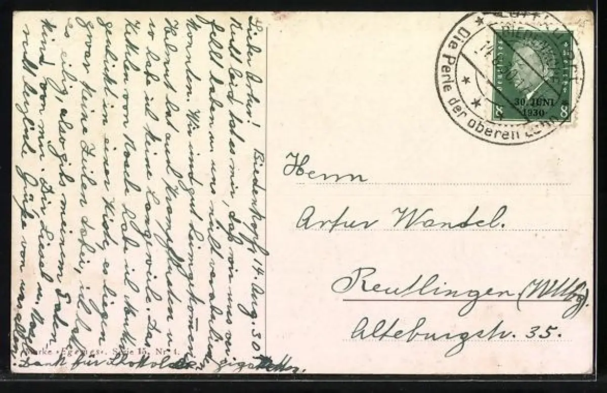 alte Ansichtskarte, gelaufen 1930, guter Zustand