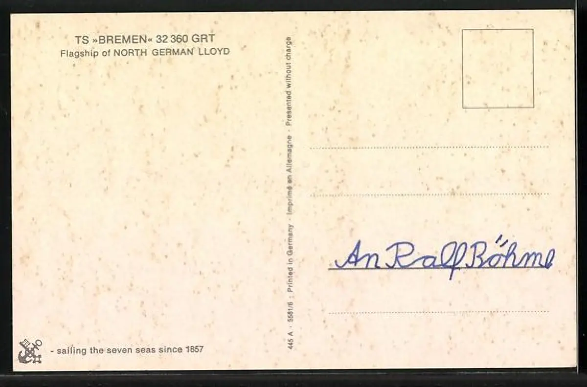 AK Vierschrauben-T.S. Bremen, Flagschiff des Norddeutschen LIoyd Bremen, Passagierschiff