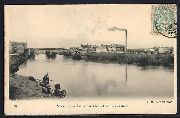 AK Vierzon, Vue sur le Cher, L`Usine élévatoire