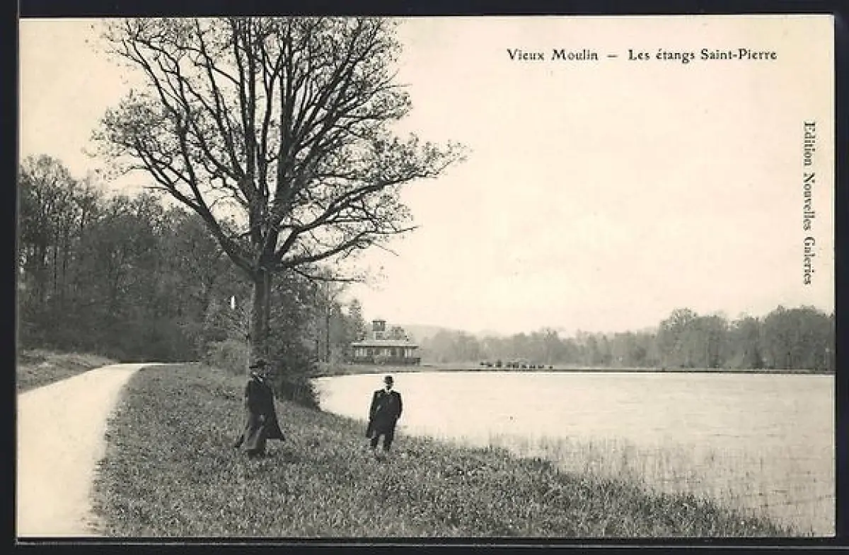 AK Vieux Moulin, Les étangs Saint-Pierre et promeneurs sur le chemin