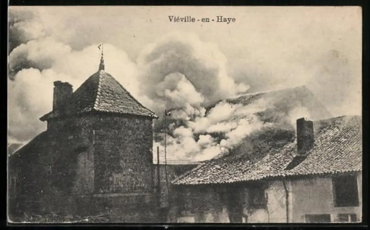 AK Viéville-en-Haye, Brennendes Haus
