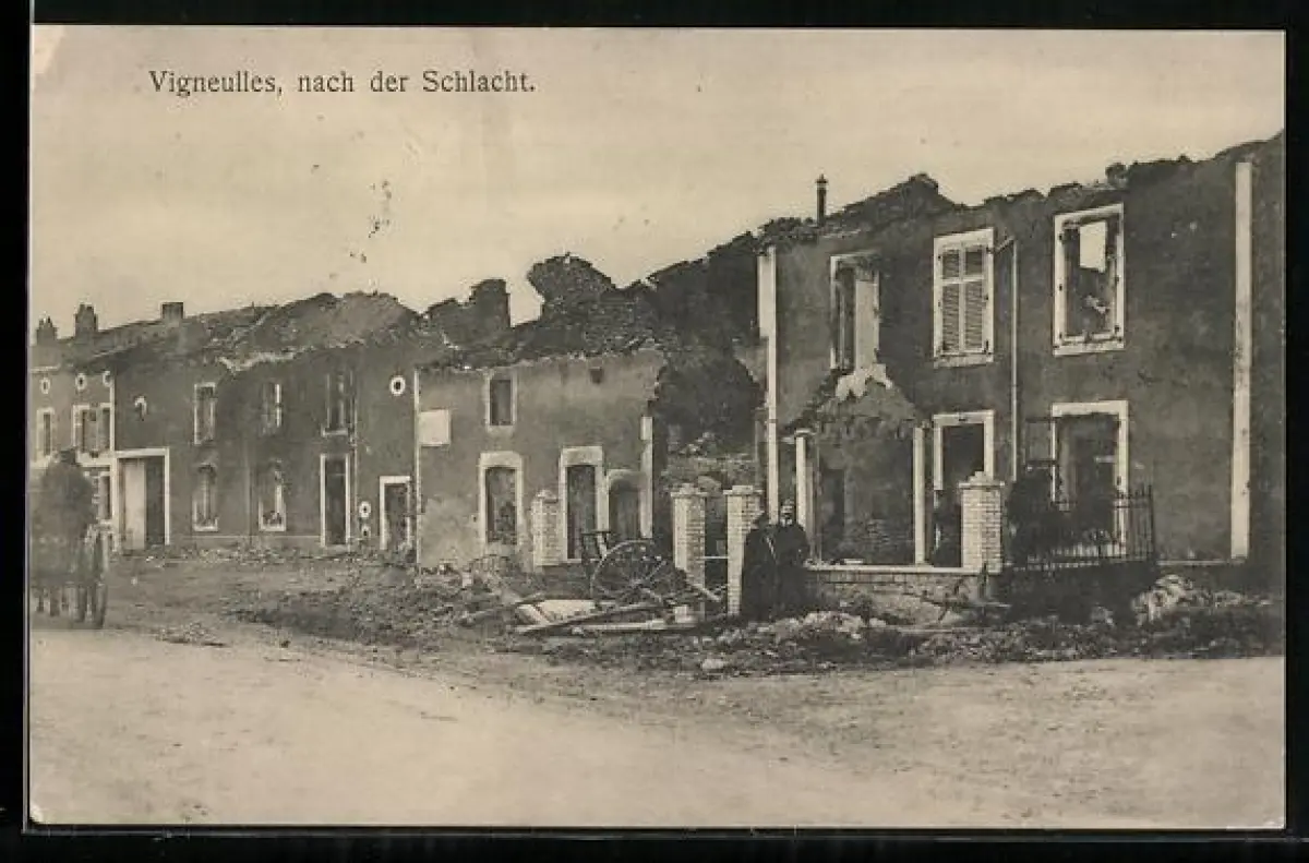 AK Vigneulles, Strasse mit zerstörten Häusern, Soldaten