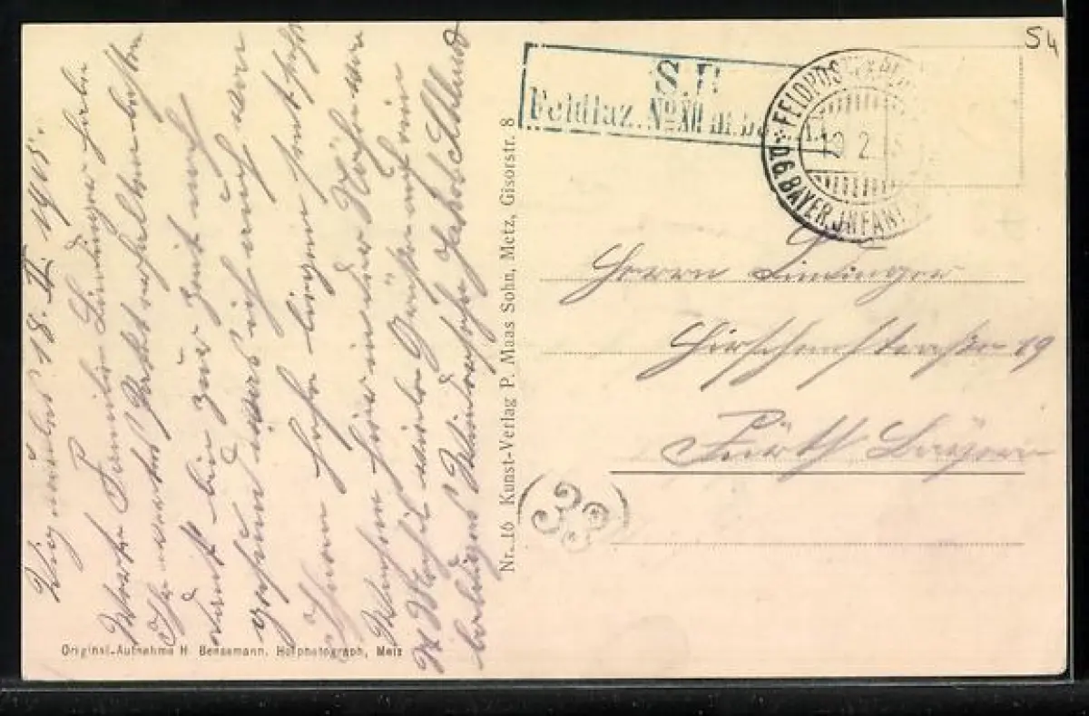 alte Ansichtskarte, gelaufen 1915, Eckknick li. oben, Abriebspur li. oben, guter Zustand