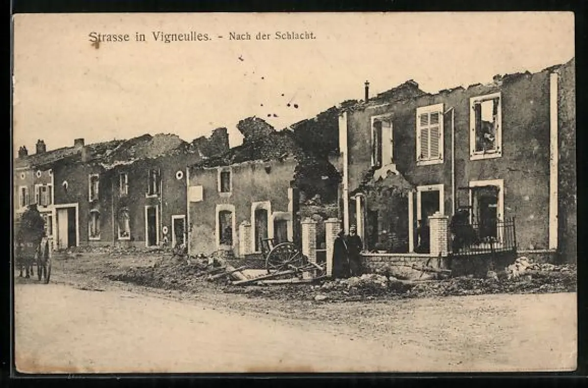 AK Vigneulles, Wohnhäuser nach dem Beschuss
