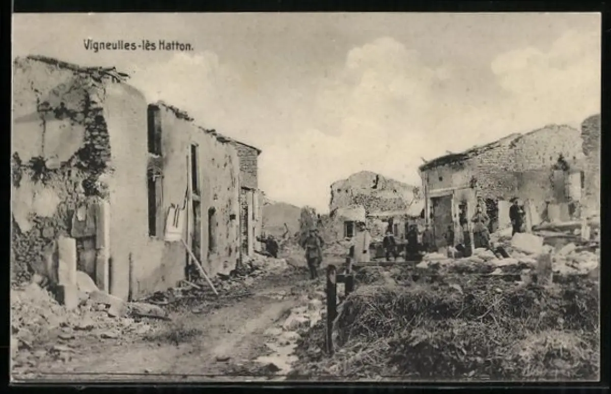 AK Vigneulles-les Hatton, Soldaten im zerstörten Ort