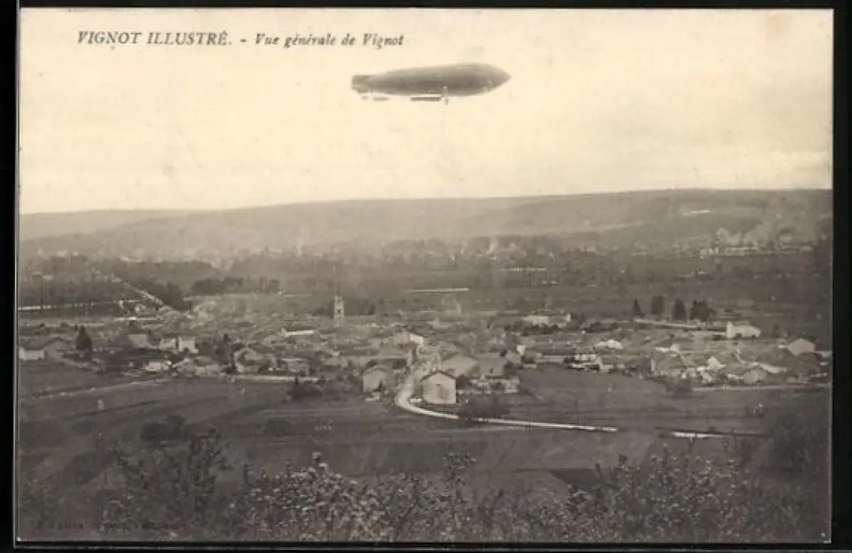 AK Vignot, Zeppelin über dem Ort