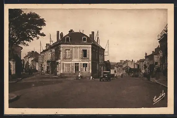 AK Vihiers, Route de Cholet avec voiture et bâtiments anciens