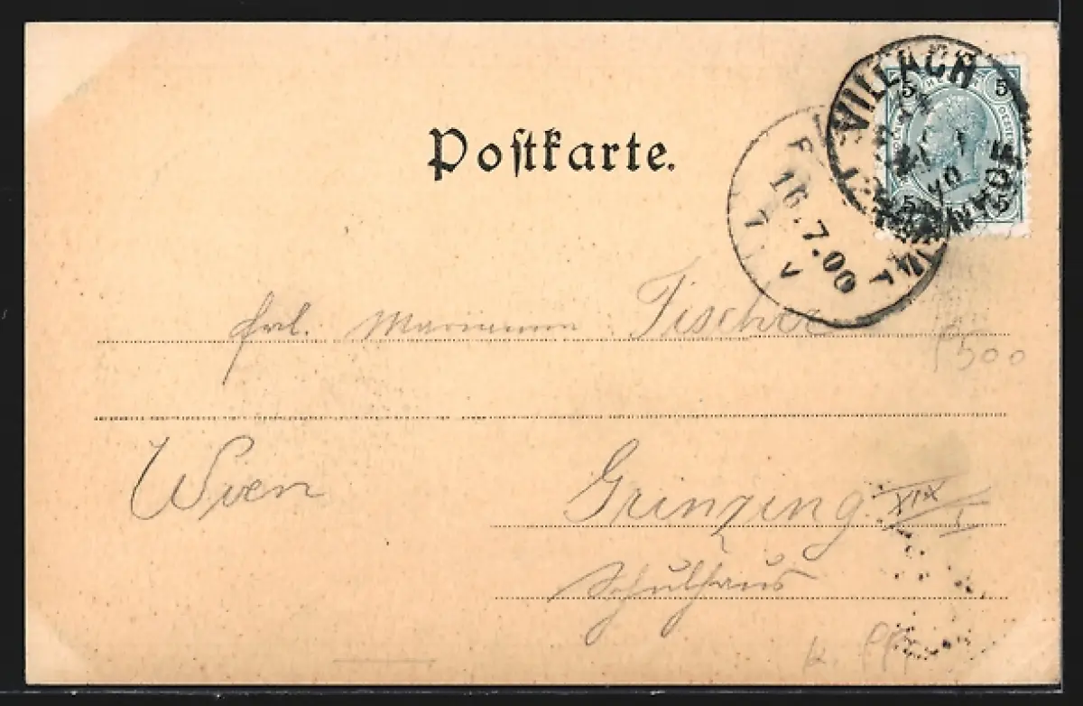 alte Ansichtskarte, gelaufen 1900, Stempelspur, guter Zustand