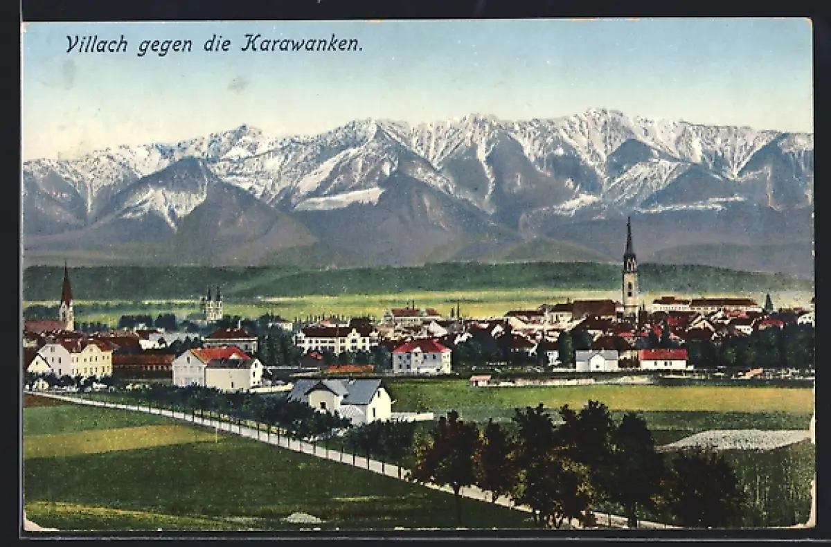 AK Villach, Gesamtansicht gegen die Karawanken