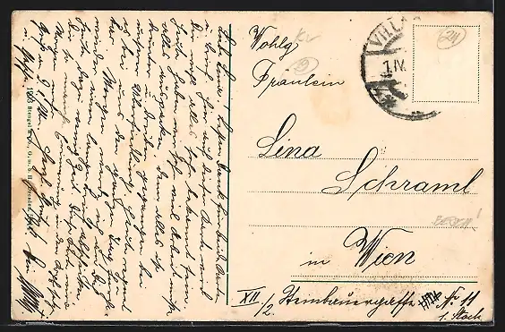 alte Ansichtskarte, gelaufen, Briefmarke entfernt, rückseitig Oberflächenschaden, guter Zustand