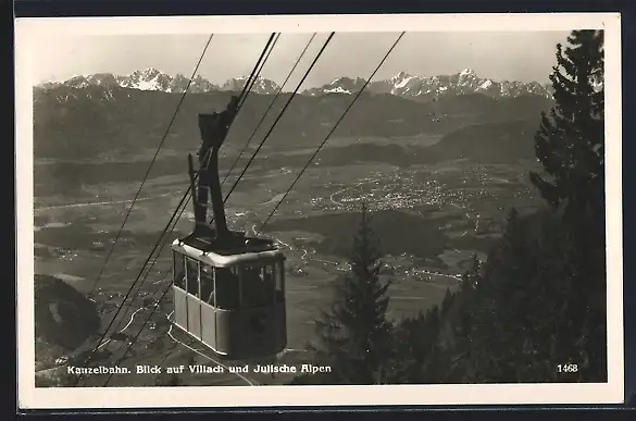 AK Villach, Kanzelbahn mit Villach u. Julische Alpen