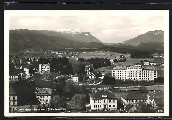AK Villach, Ortsansicht gegen Dobratsch in der Villacheralpe