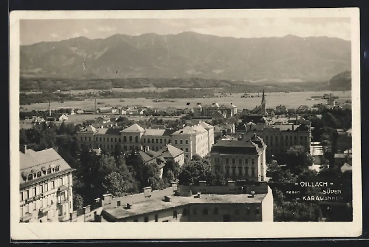 AK Villach, Ortsansicht gegen Süden m. Karawanken