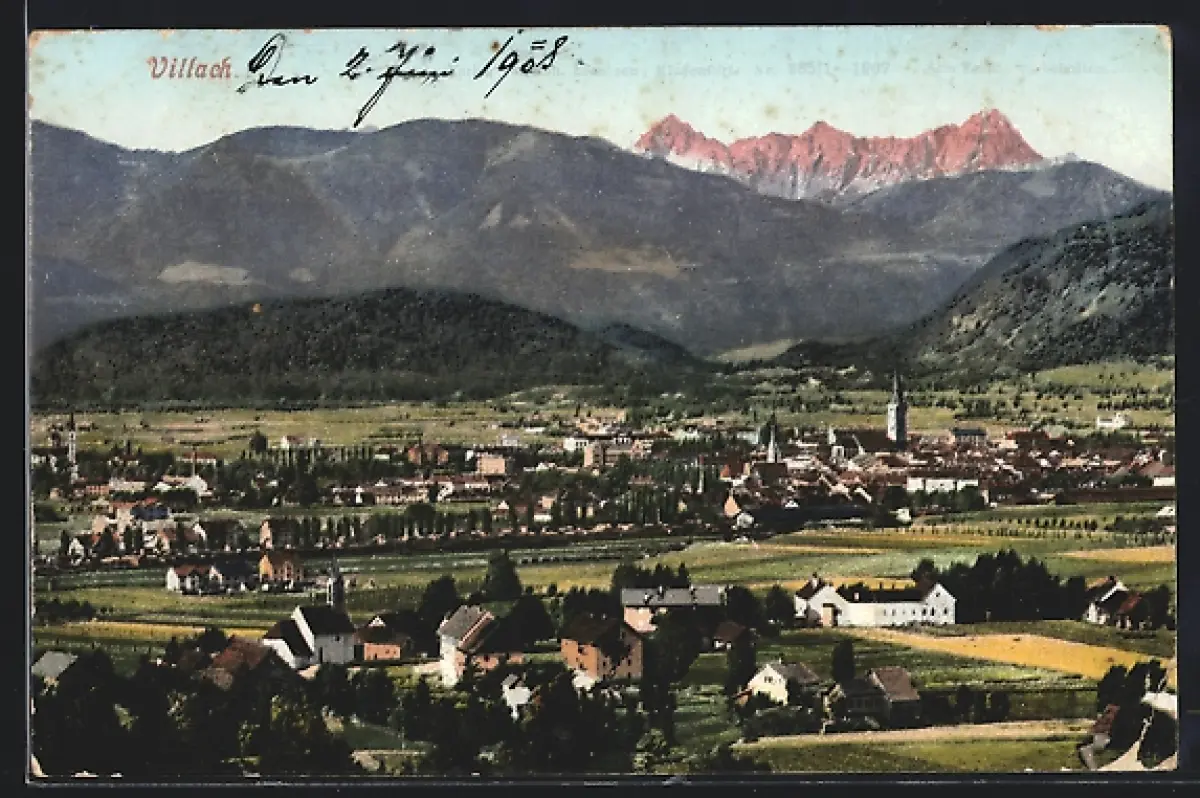 AK Villach, Teilansicht aus der Vogelschau