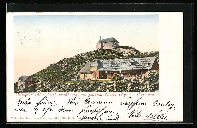 AK Villach, Villacher Alpe auf dem Dobratsch, Blick zum Restaurant