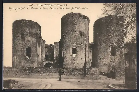 AK Villandraut, Tours principales à l`Entrée du Vieux Château (Mon. hist. du XIVe siècle)
