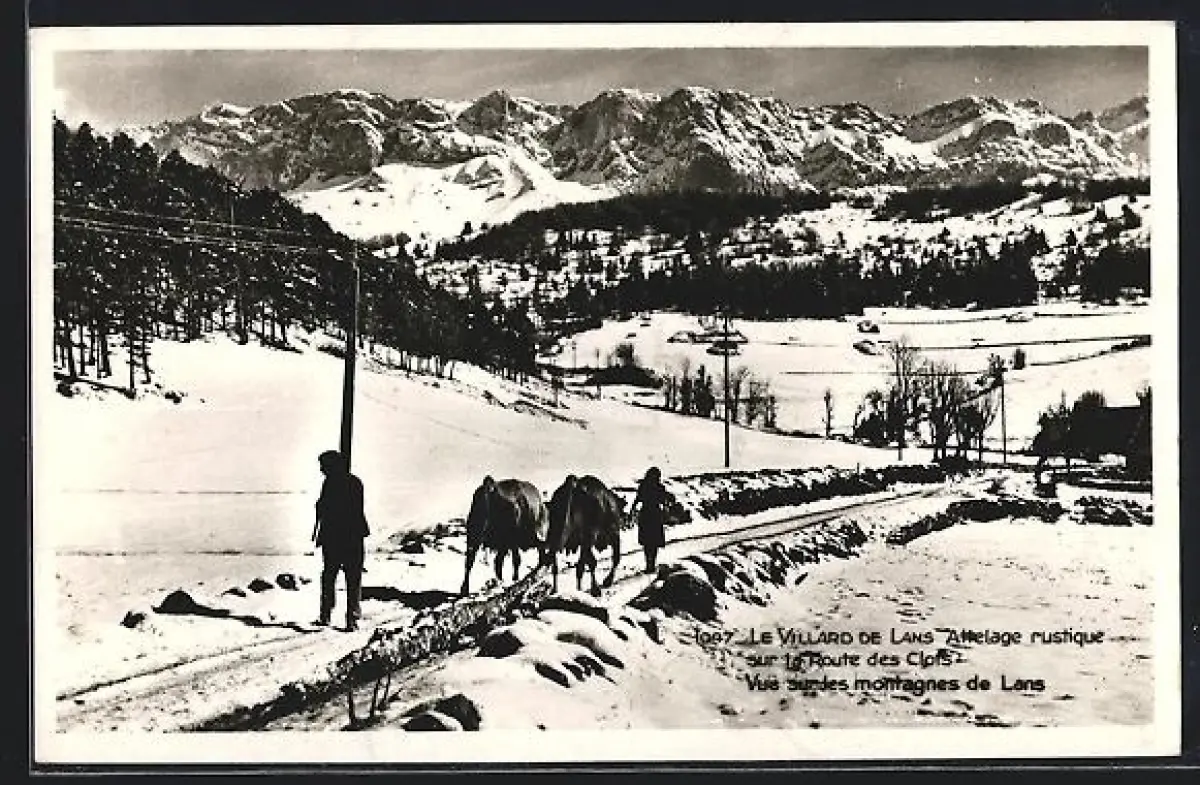 AK Villard-de-Lans, Attelage rustique sur la Route des Clots, vues sur les montagnes de Lans