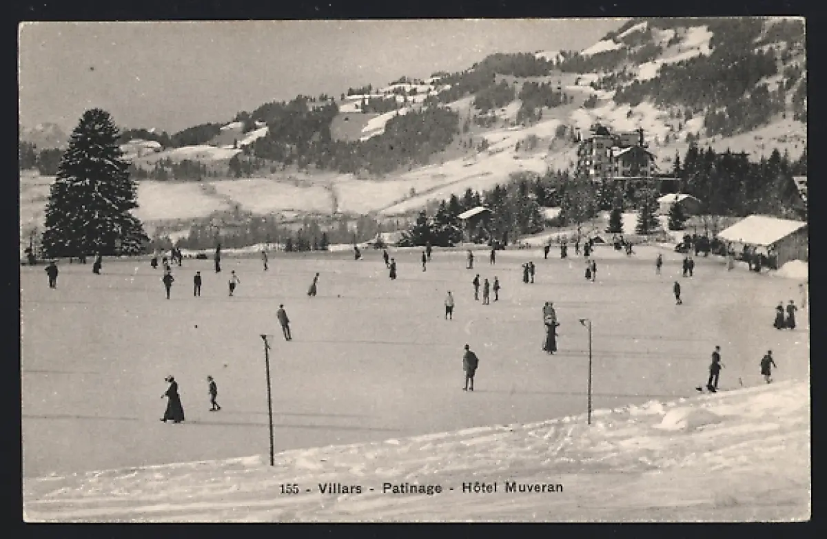 AK Villars, Patinage, Hôtel Muveran avec vue sur les montagnes enneigées