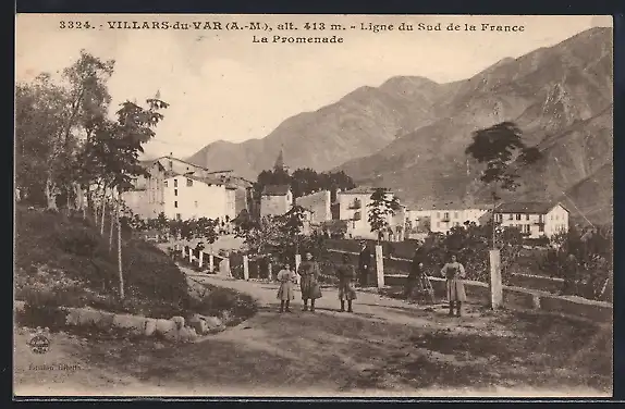 AK Villars-du-Var, La Promenade avec vue sur les montagnes et les maisons adjacentes