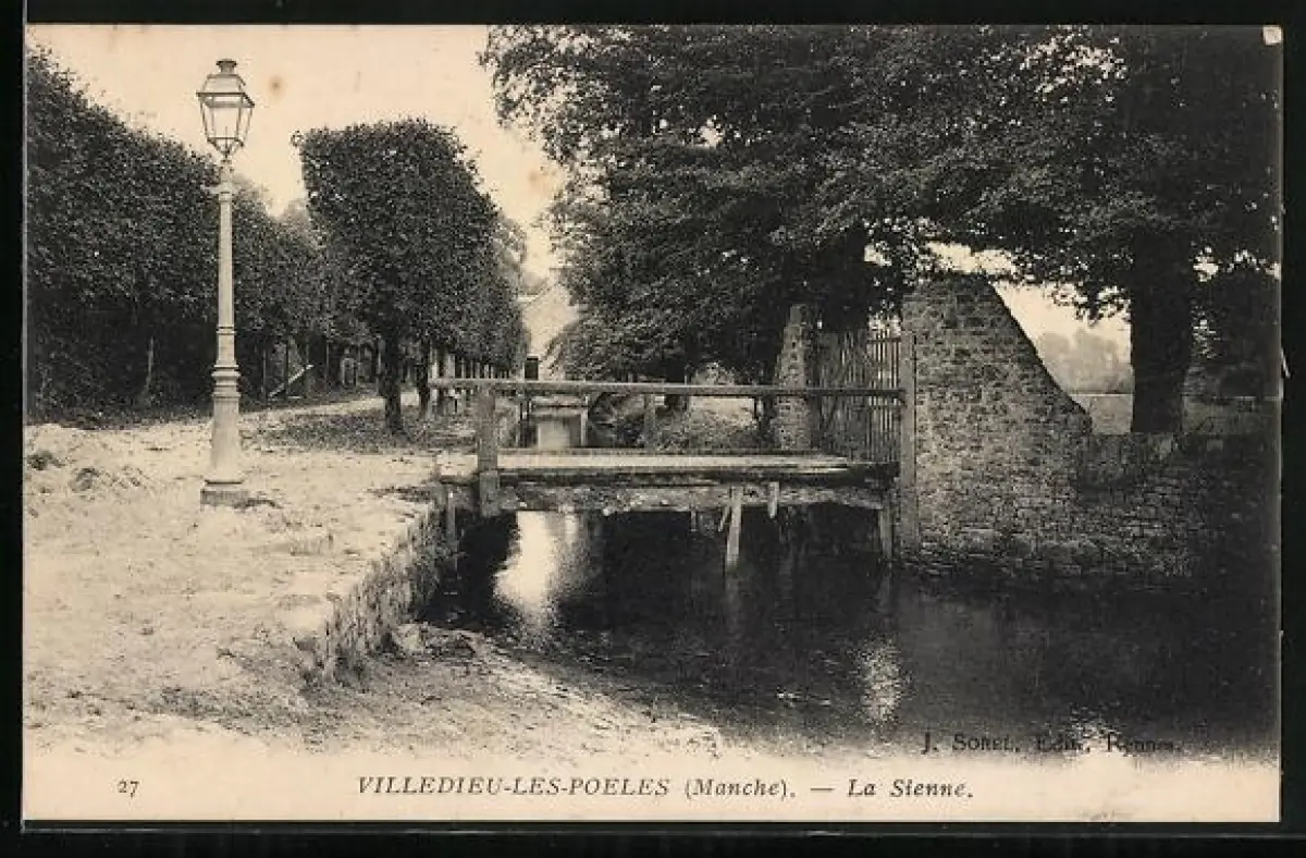 AK Villedieu-les-Poeles /Manche, La Sienne et le petit pont pittoresque