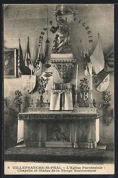 AK Villefranche-St-Phal, L`Église Paroissiale: Chapelle et Statue de la Vierge douloureuse