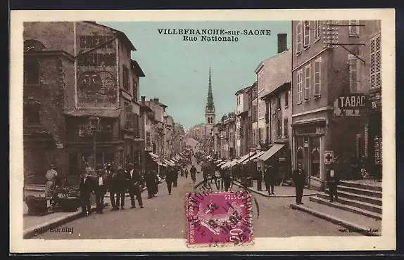 AK Villefranche-sur-Saône, Rue Nationale animée avec passants et commerces