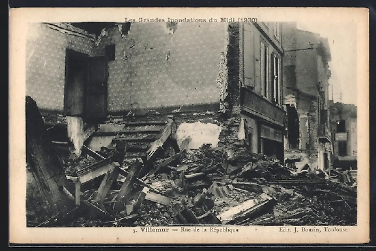 AK Villemur, Rue de la République après les Grandes Inondations du Midi, 1930