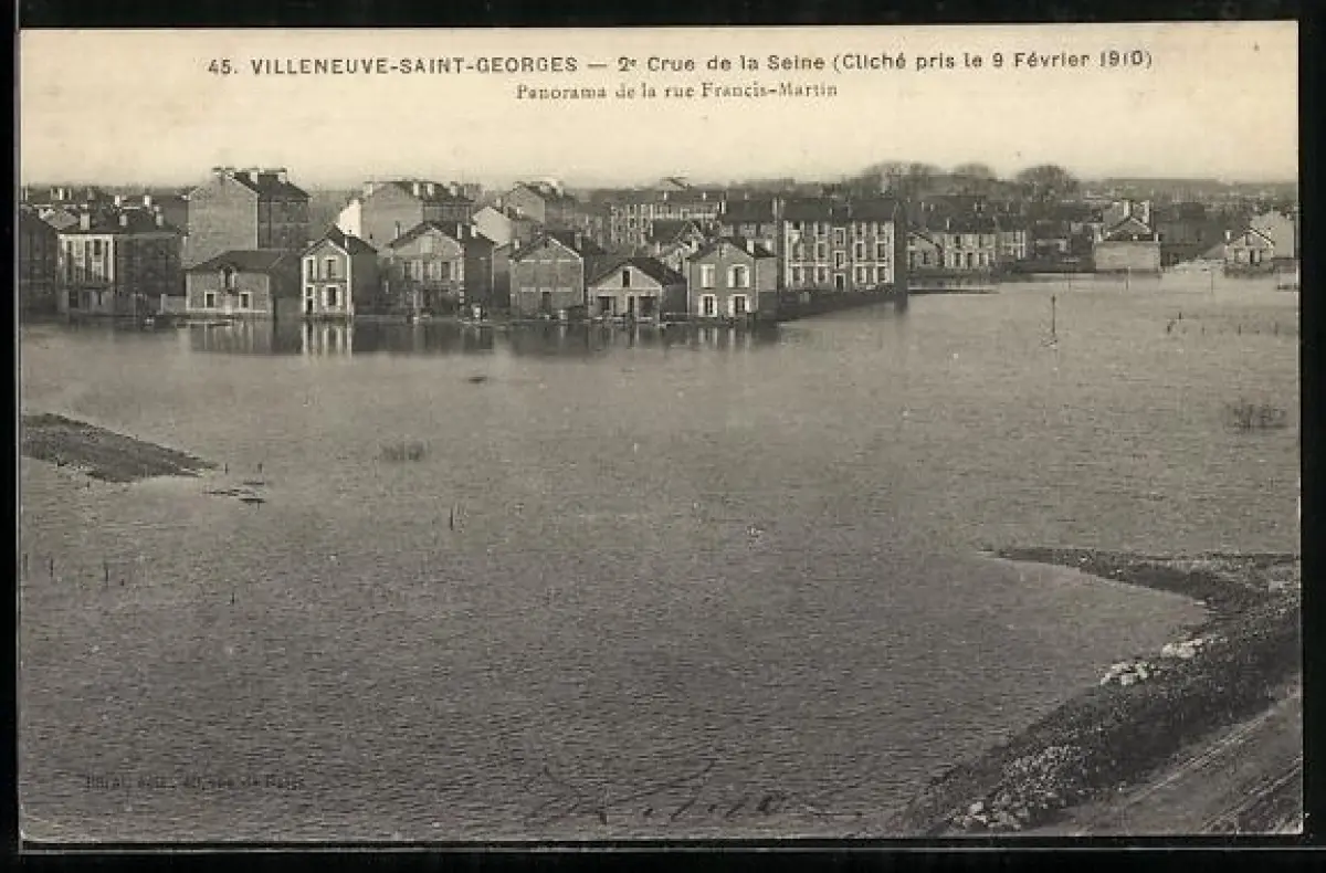 AK Villeneuve-Saint-Georges, 2e Crue de la Seine, Panorama de la rue Francis-Martin