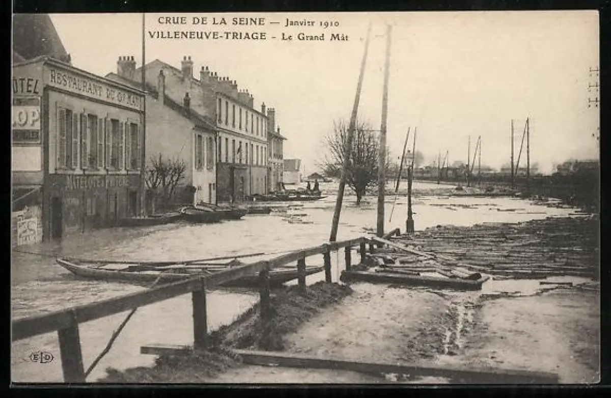 AK Villeneuve-Triage, La Grande Mât, Hochwasser 1910